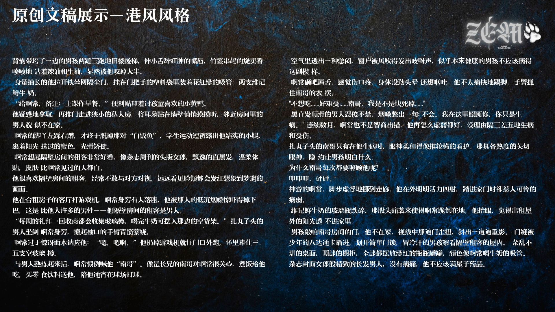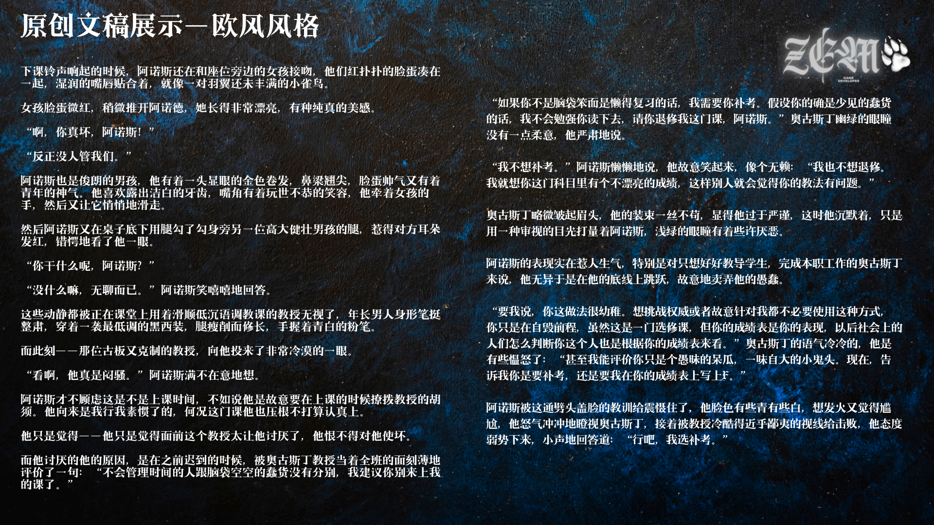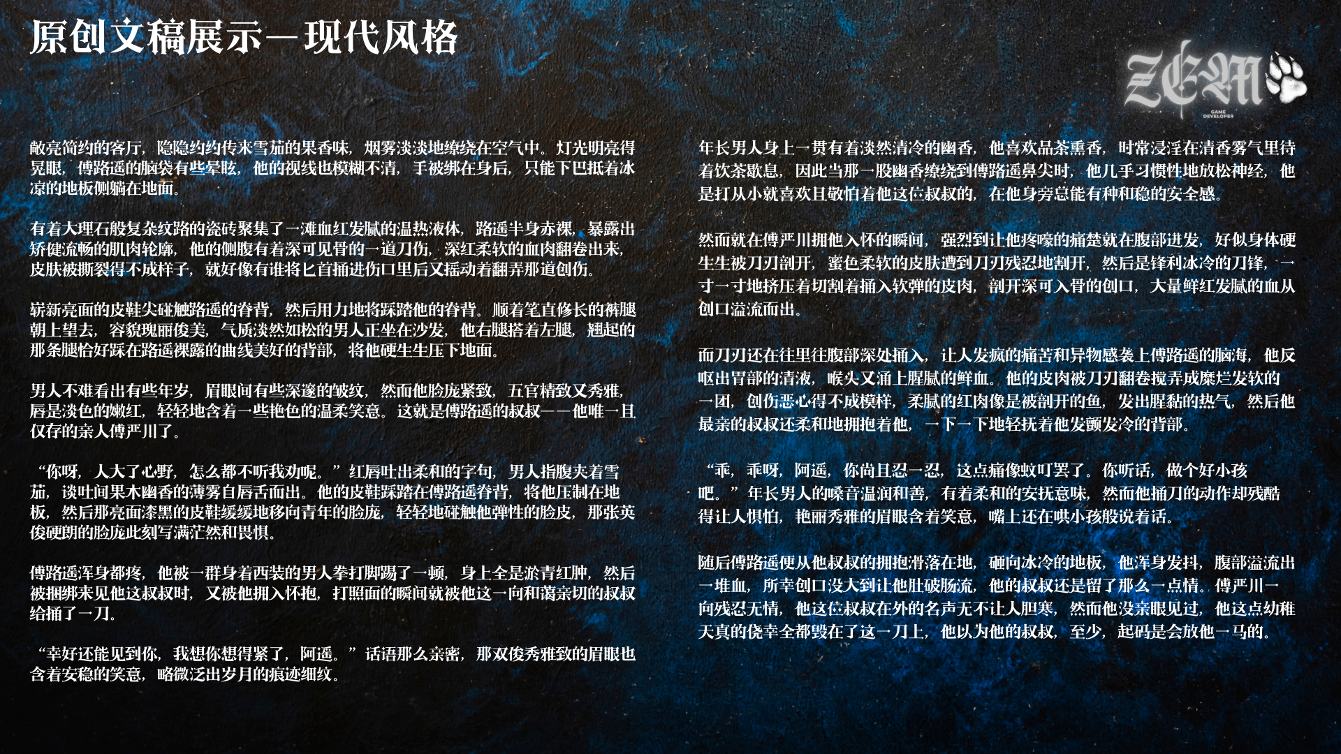 ZEM泽狼涉猎不同风格的原创/同人文节选