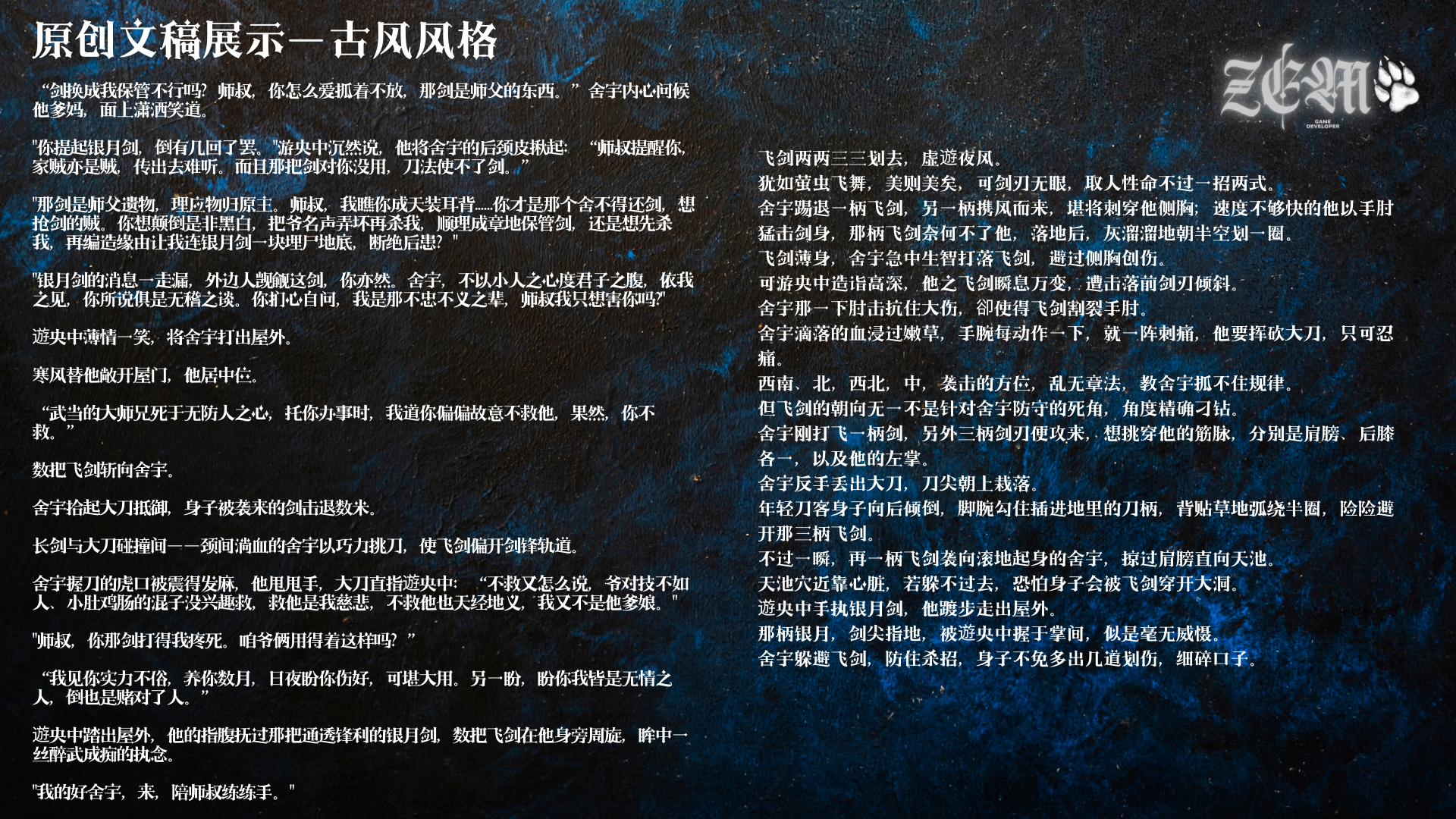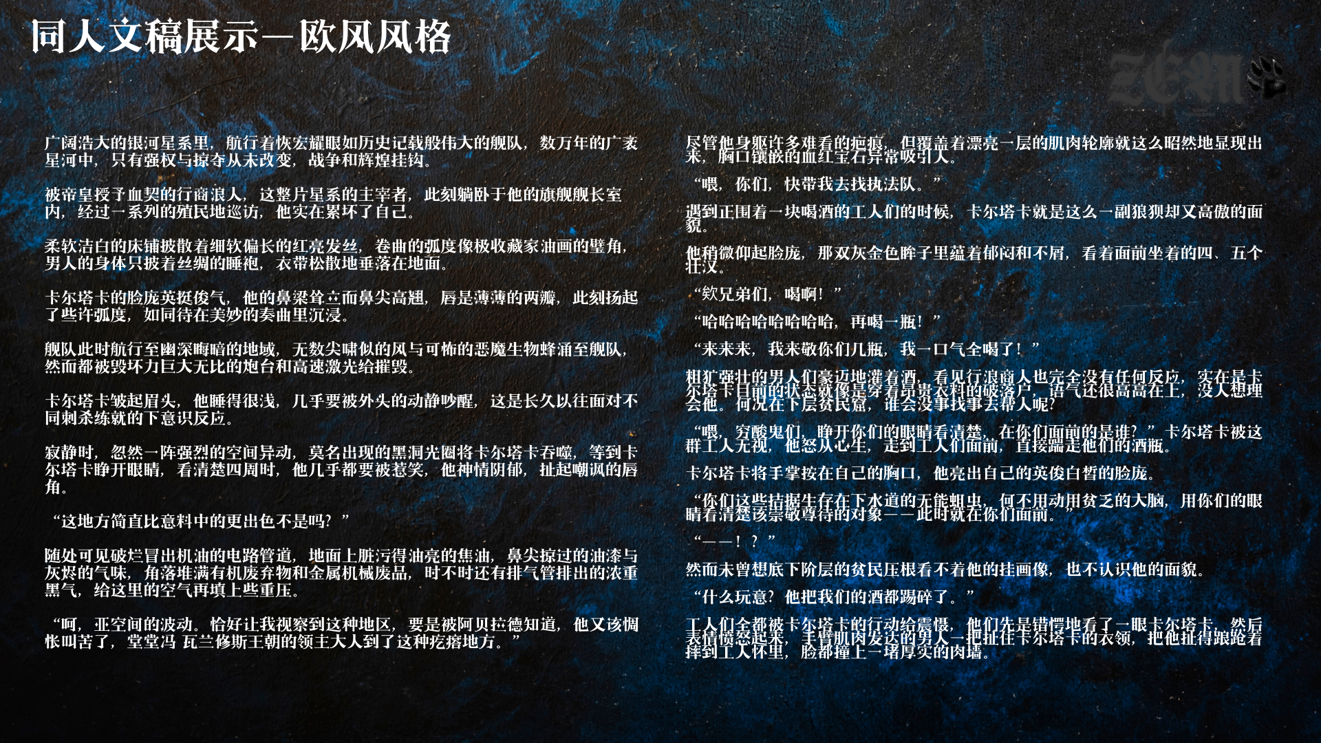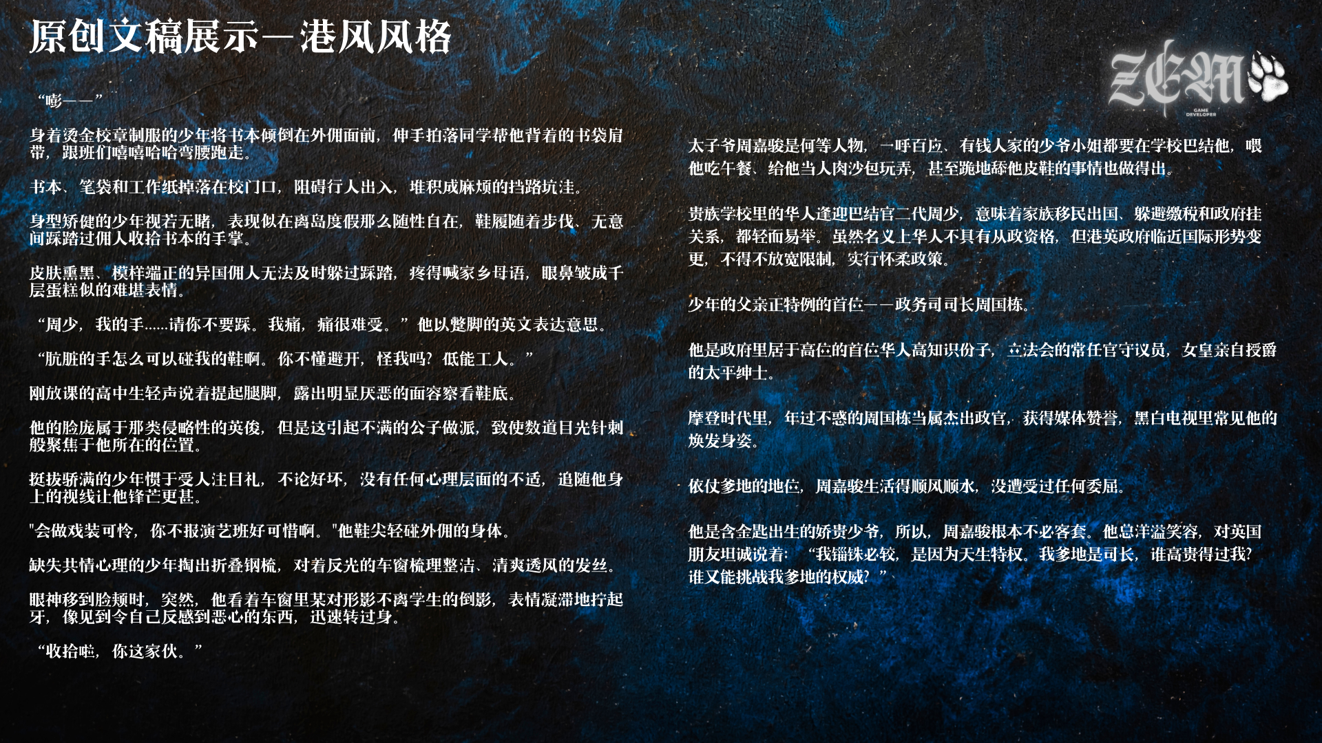 ZEM泽狼涉猎不同风格的原创/同人文节选
